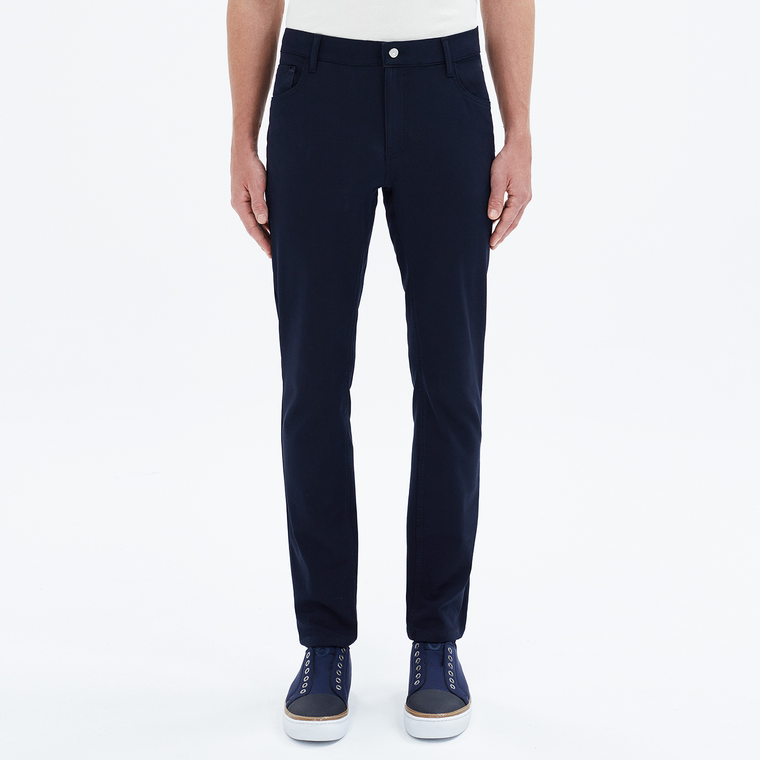 • Slim-fit, five-pocket pants made of smooth, stretchy cotton-blend twill. Designed with a mid rise waist, straight leg, and classic flat front making it a versatile wardrobe staple that can be worn for any occasion.