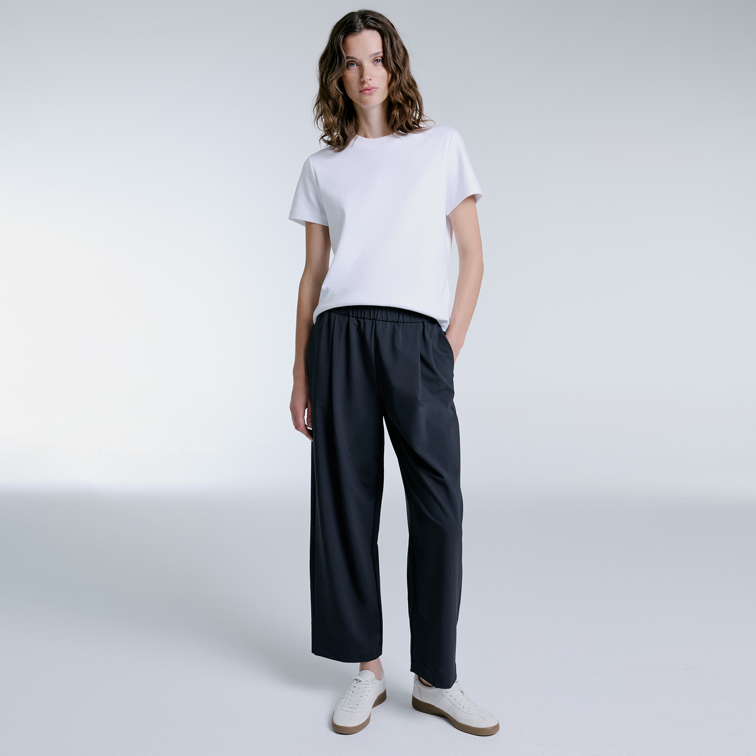 Alba brings together the softness of wool yarn with technical performance. Designed with an elasticated waistband and stretch fabric, these trousers offer all-day comfort, while breathable properties and a sleek, minimalist silhouette make them perfect for everyday wear. Ideal for smart-casual styling, pair Alba with the Ruth jacket for a refined coordinated look.