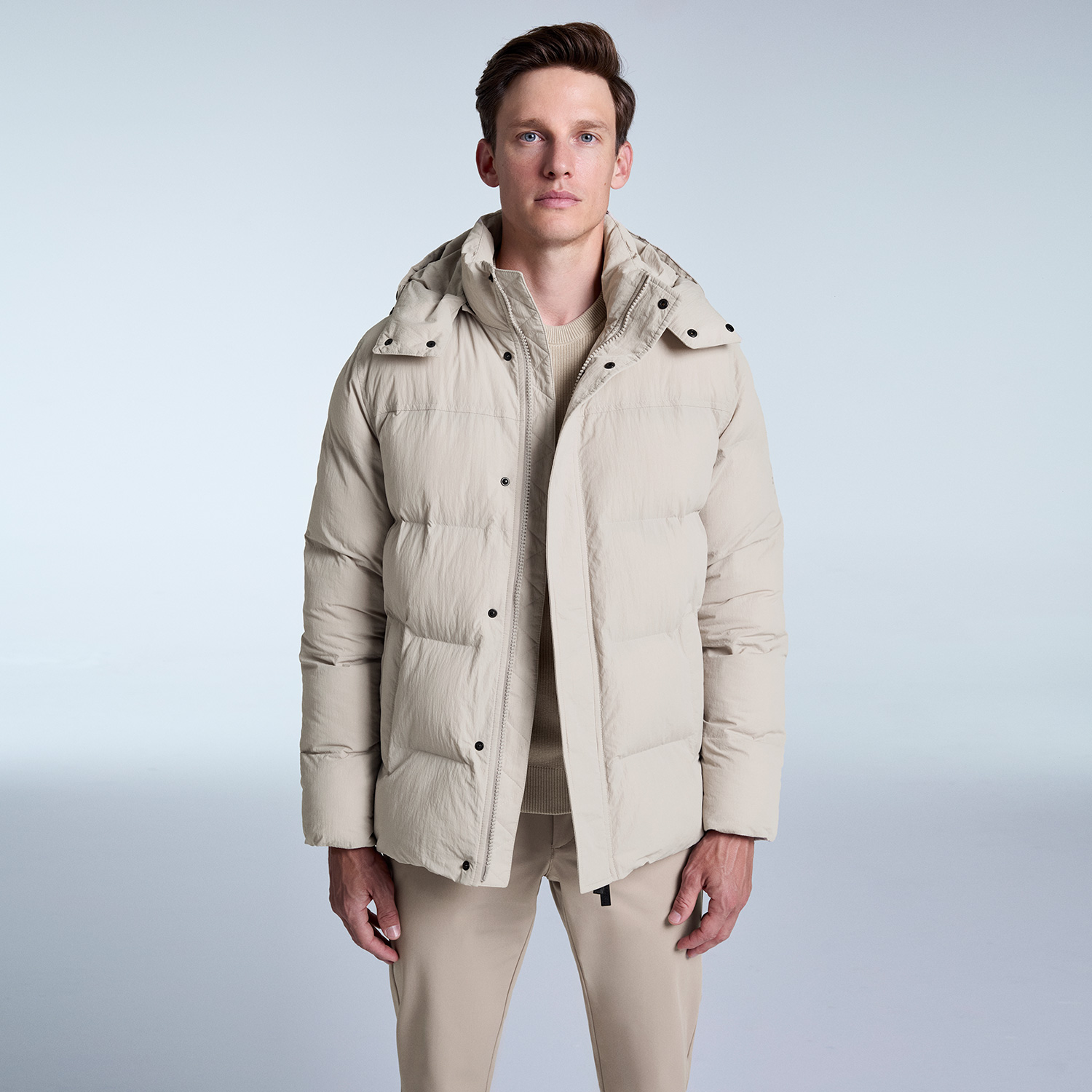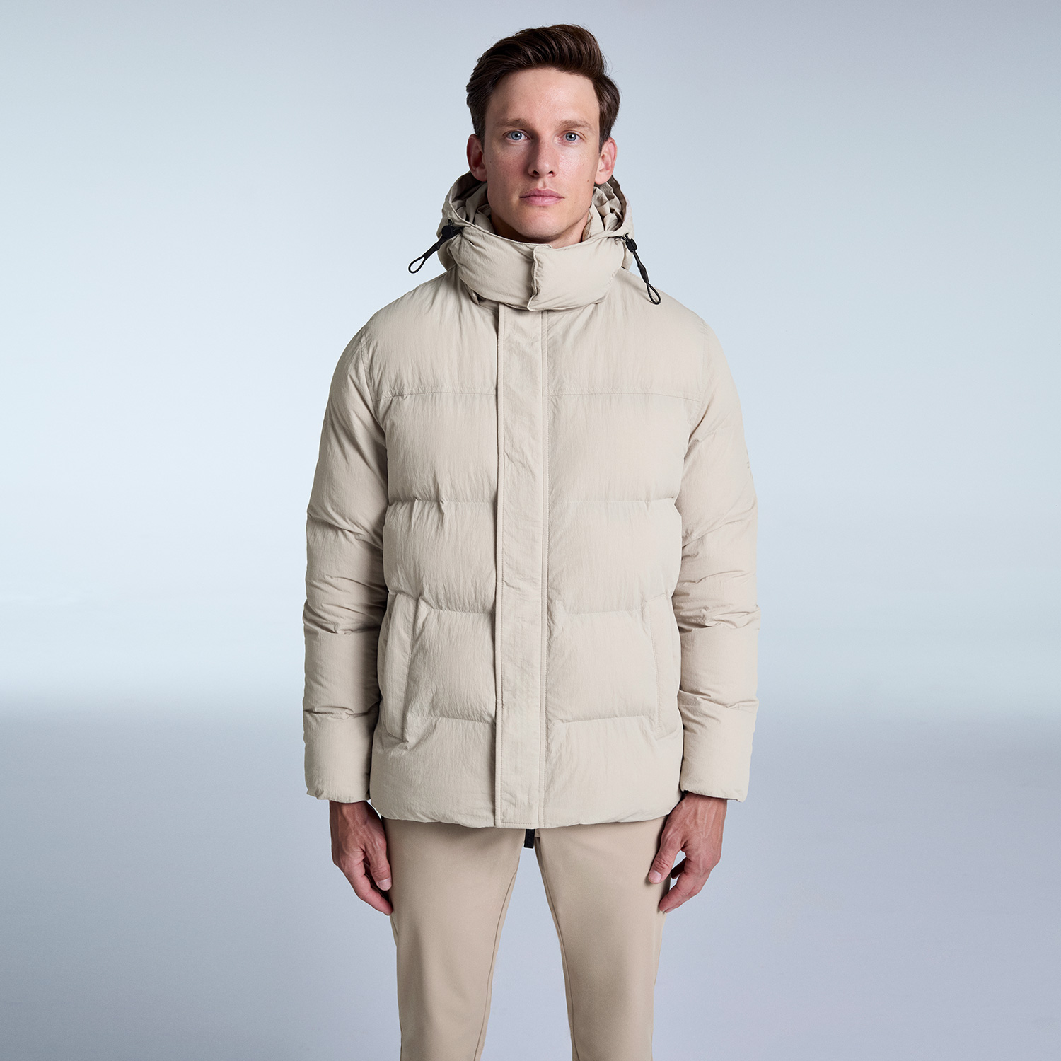 • Andri is a functional jacket offering flexibility with its removable hood. Featuring zippered internal and external pockets, it provides practical storage. Its water-resistant, wrinkle-proof crinkled fabric offers superior protection against the elements, while the relaxed fit and minimal design make it an essential piece in your winter wardrobe.