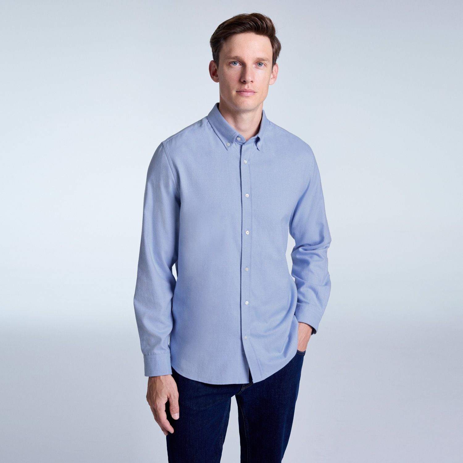 • Crafted from 100% cotton with a button-down collar, this shirt offers a classic and timeless option. Its versatile silhouette makes it ideal for both everyday and smart-casual outfits.