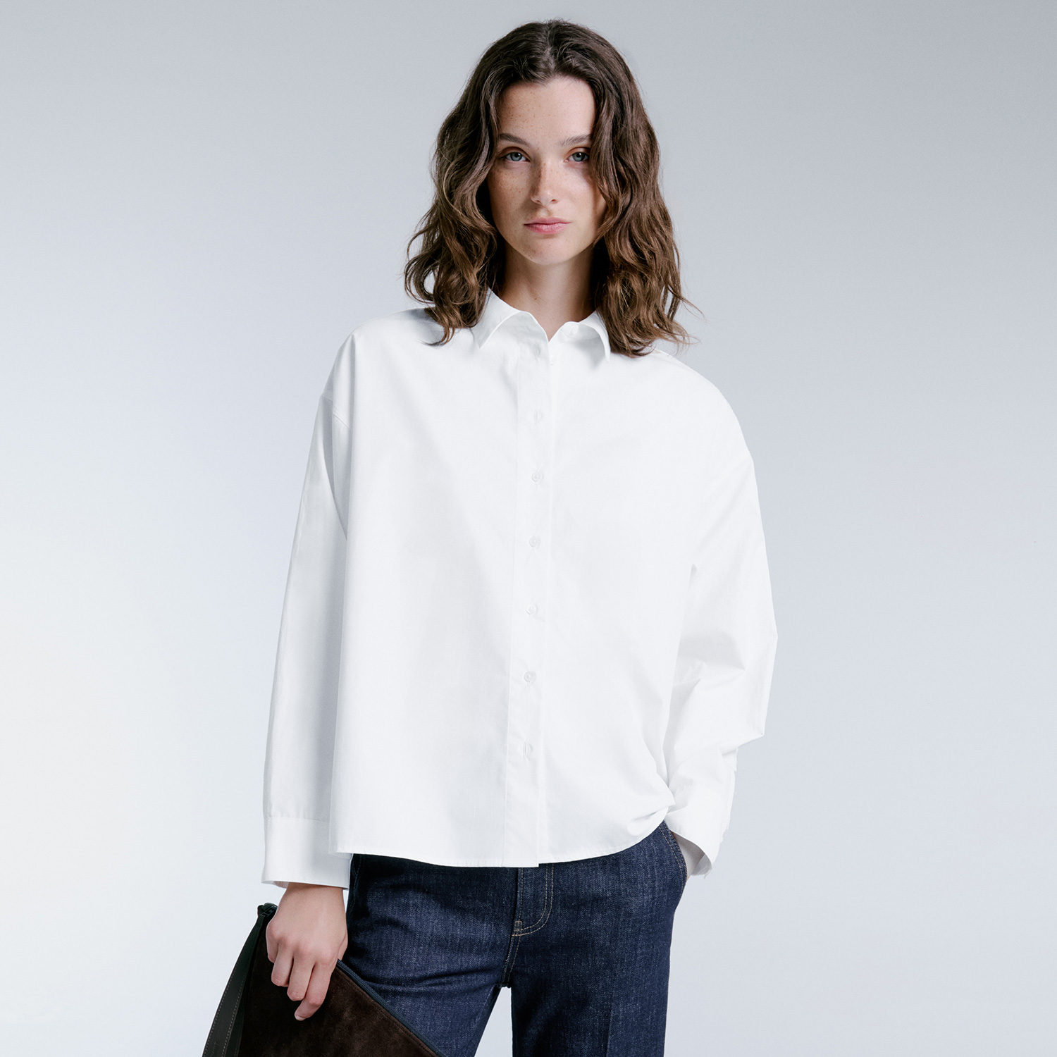 • The Elene Shirt features an oversized silhouette enhanced by back pleat details for added volume and movement. Crafted from soft-touch cotton, it offers comfort while delivering a relaxed yet refined look.