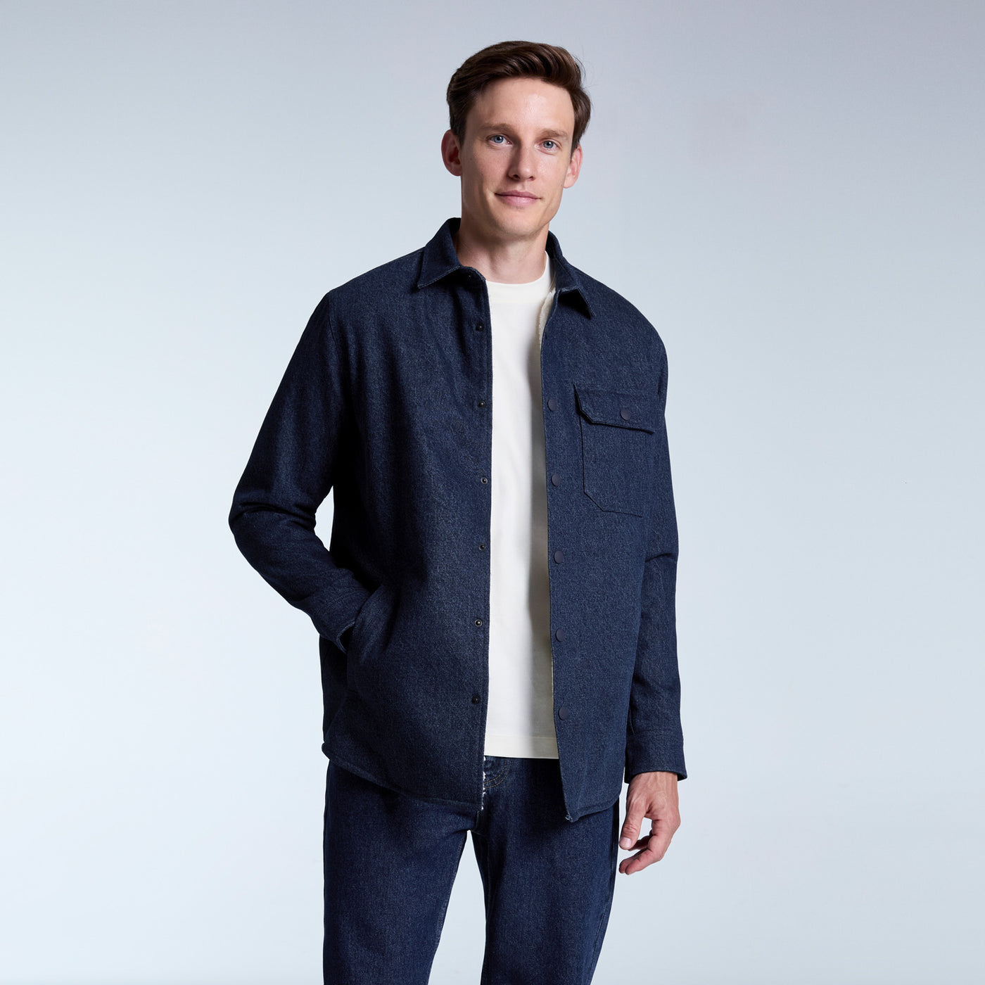 Ellis provides superior comfort in cold weather with its durable denim fabric and soft sherpa lining. Featuring a functional design with snap fasteners and pockets, this jacket will be an energetic and comfortable choice for your everyday outfits.