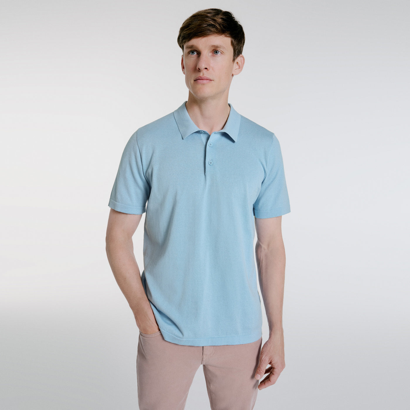 Offering a classic aesthetic and distinguished by its superior quality construction, the Lewis Short-Sleeve Knit Polo is a versatile piece for your wardrobe. You can combine it with trousers for a relaxed look.