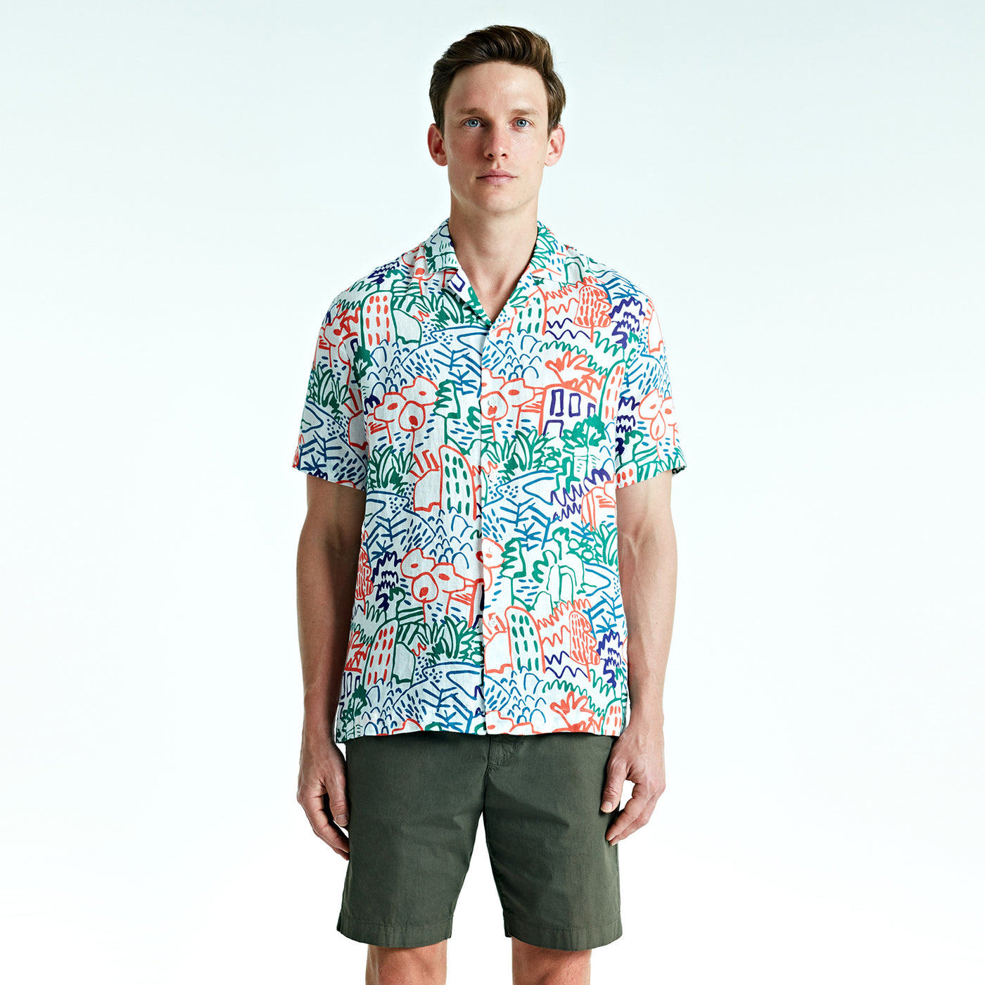 Mars offers a fresh take on the classic shirt, a must-have for those who prefer a relaxed style. Made from lightweight and soft linen, this bowling-neck, seasonal shirt will flatter you with its improved comfort fit. It's now easy to create a retro look by combining it with our chino trousers.