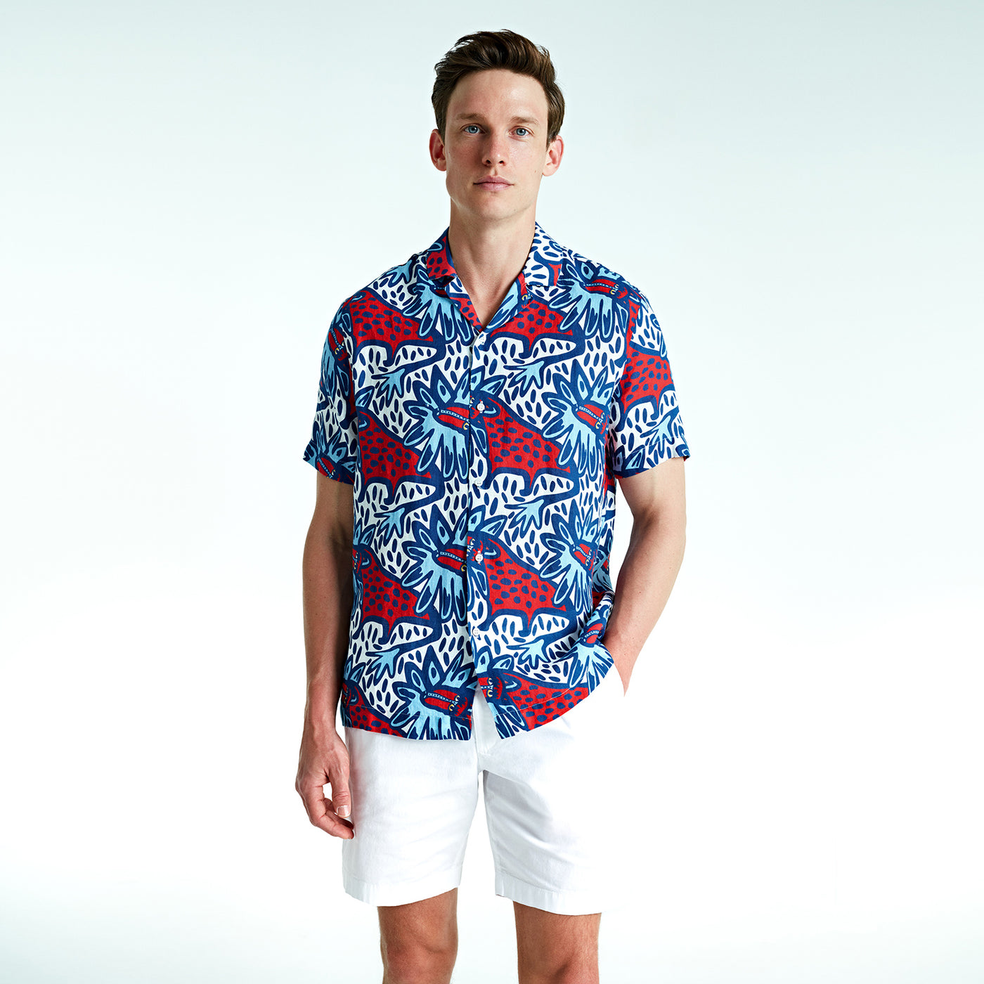 Mars offers a fresh take on the classic shirt, a must-have for those who prefer a relaxed style. Made from lightweight and soft linen, this bowling-neck, seasonal shirt will flatter you with its improved comfort fit. It's now easy to create a retro look by combining it with our chino trousers.