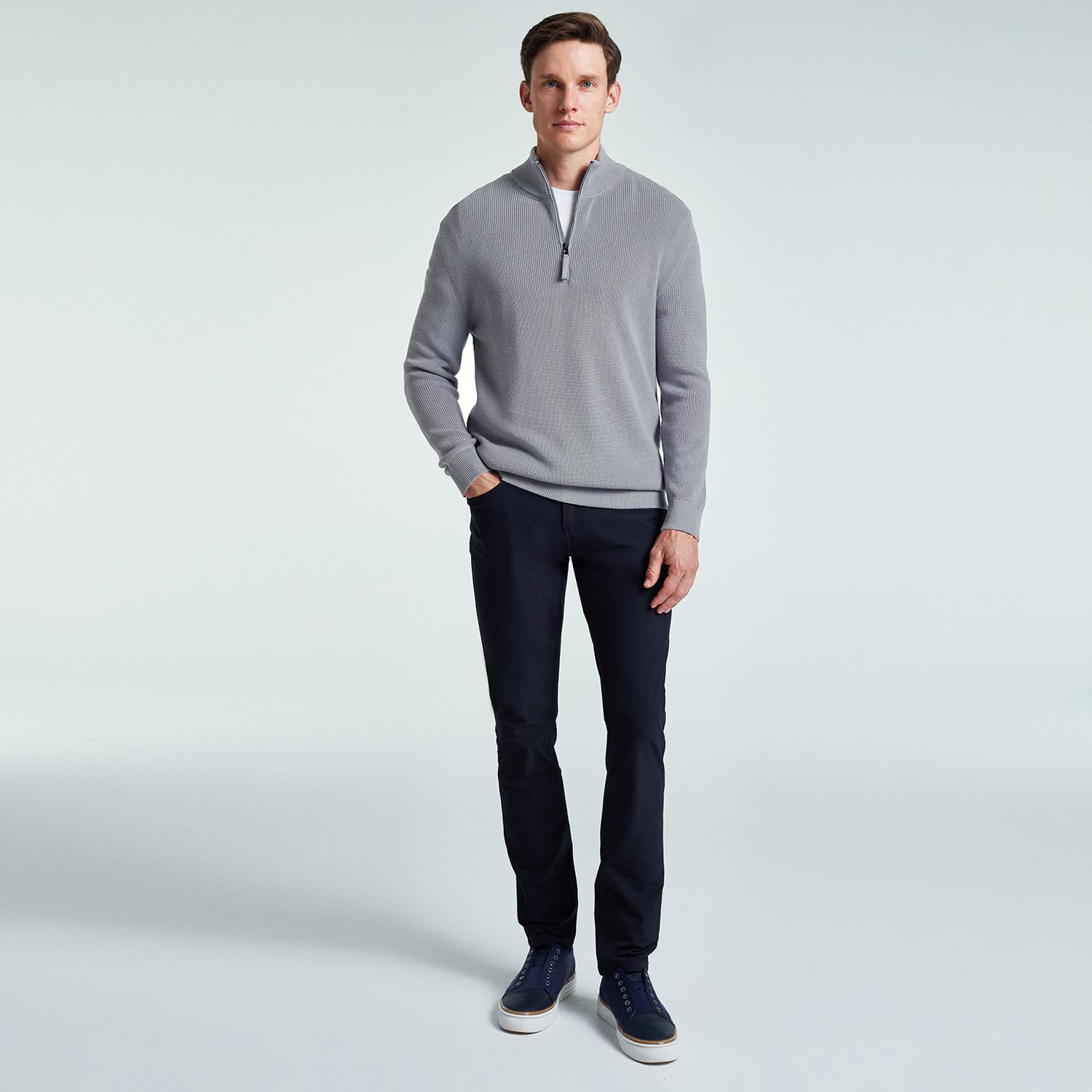 Ribbed Cotton Half-Zip Sweater