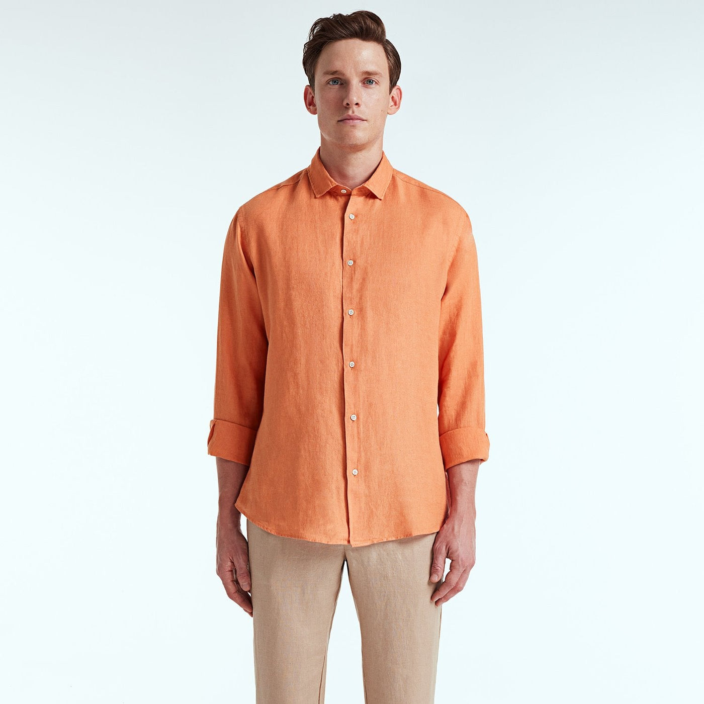 %100 Fransız keteninden üretilen Luca uzun kollu gömlekler dolabınızın vazgeçilmez parçası olacak. Kavisli etek ucu ve sedef ön düğmeleri olan bu gömleği Bluemint bermuda şortlarla veya chinolarla kombineyebilirsiniz.