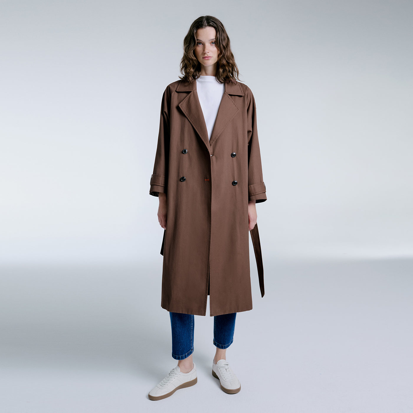 Vivienne, oversize kalıbı, dik duruşu ve geniş yakasıyla modern bir görünüm sunuyor. Kontrast dikiş detayları ile zenginleştirilen Vivienne trençkot, sonbaharın vazgeçilmezi olacak.