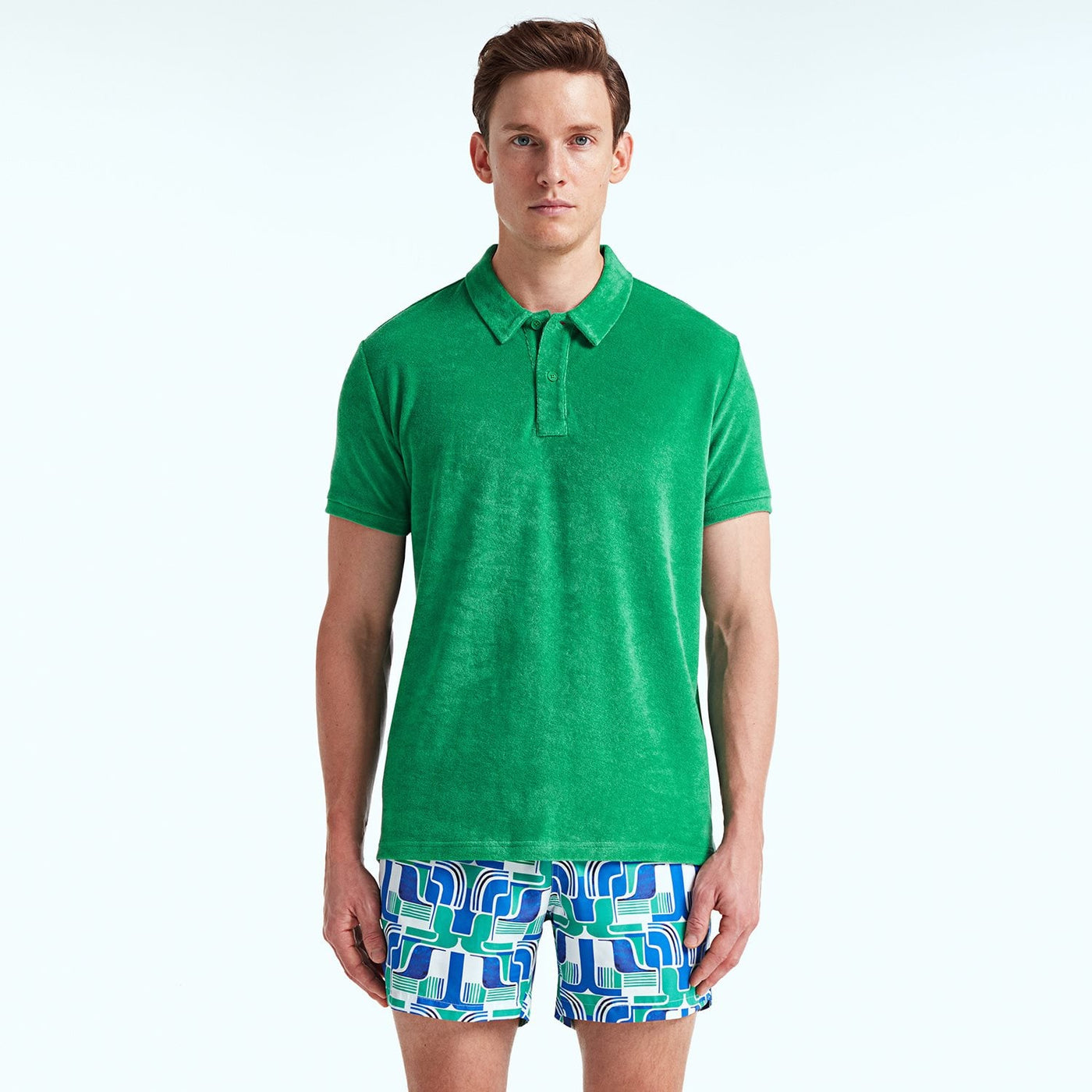 Hafif ve nefes alabilen havlu kumaştan üretilen polo tişört, yumuşak dokusuyla gün boyu rahat hissetmenizi sağlar. İnce yapısı sayesinde sıcak günlerde serin tutarken, kolay kombinlenebilir tasarımıyla her ortama uyum sağlar.